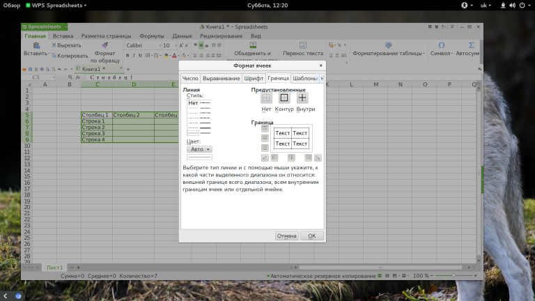 Работа с таблицами строится так же, как в Exсel. Единственное отличие — вкладка инструментов не масштабируется.